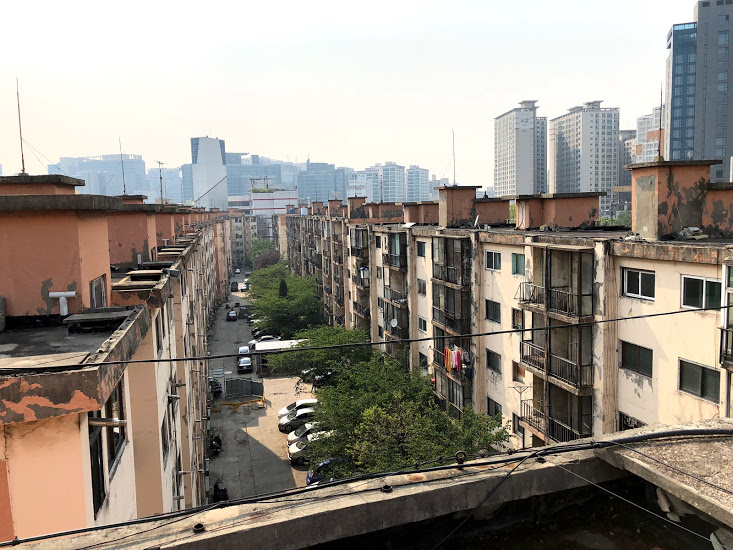 I kind of understand it. The neighborhood is not so much of value. Surrounded by Guro, Gwanak and Geumcheon district, Until recently it probably wasn't that attractive to developers. Also the owners probably had many difficulties to fund the reconstruction considering the area used to be poor since the neighborhood used to be filled with factories—the original name of the nearest station was Guro Industrial Complex.