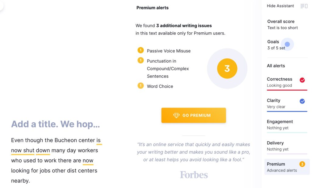 게다가 무료 버전에서도 문법, 구두법 뿐만 아니라 작문의 스타일상 조언도 (약간이지만) 해줘서 보다 정제된 문장을 작성하는 데 도움이 된다.