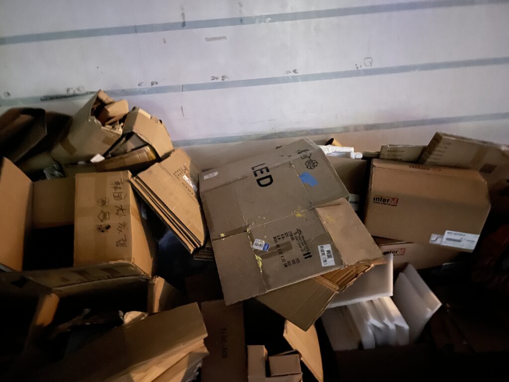 <figcaption>한 켠에는 버려진 중국산 LED 상자들이 즐비했다</figcaption>